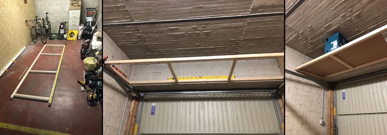 Hidden floating shelf inside garage