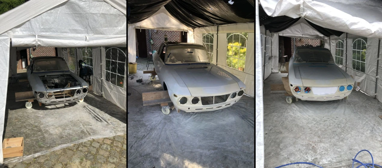 Body repair work on a Lancia Fulvia coupé
