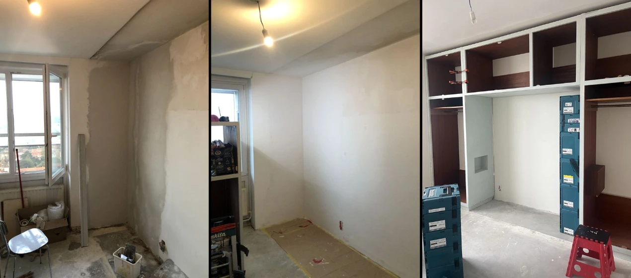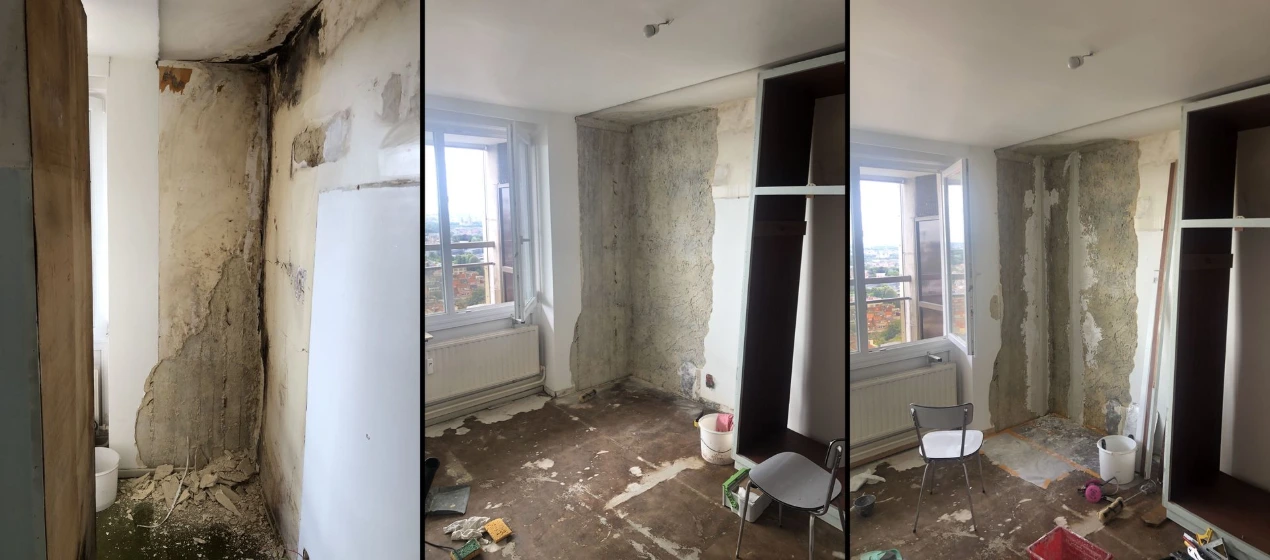 Replastering of a damp and moldy corner